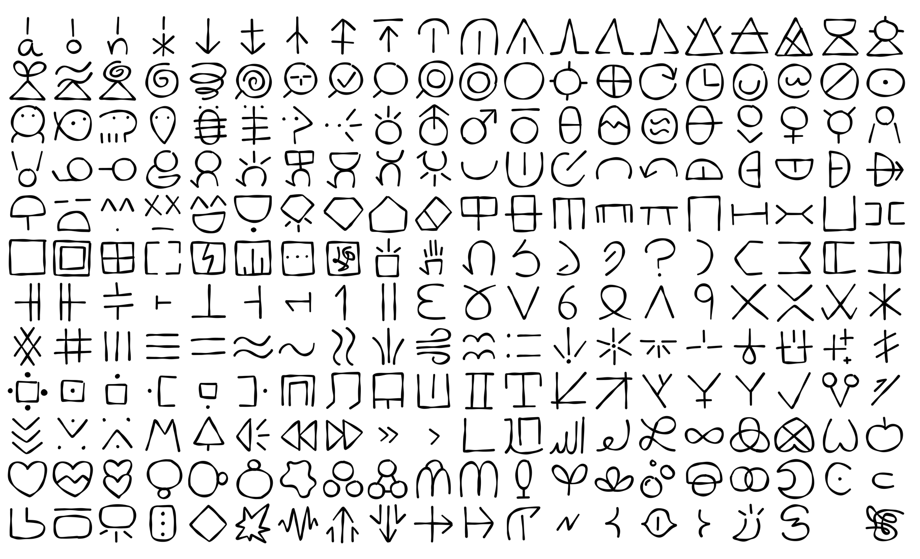 [lang] has gone through quite the transformation! here are all 239 symbols for words in the language