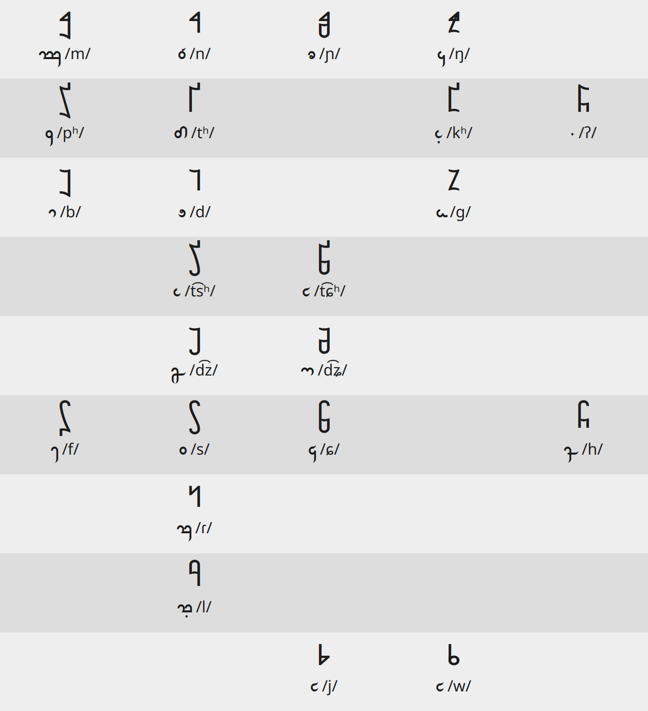 Here are the consonants: